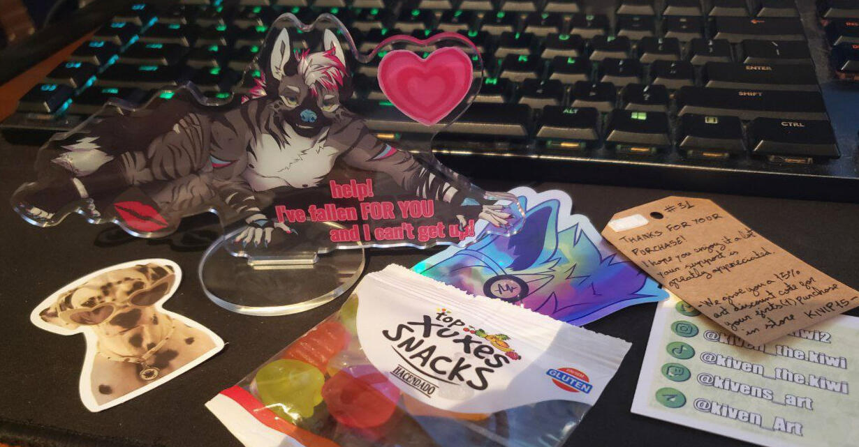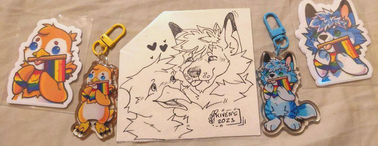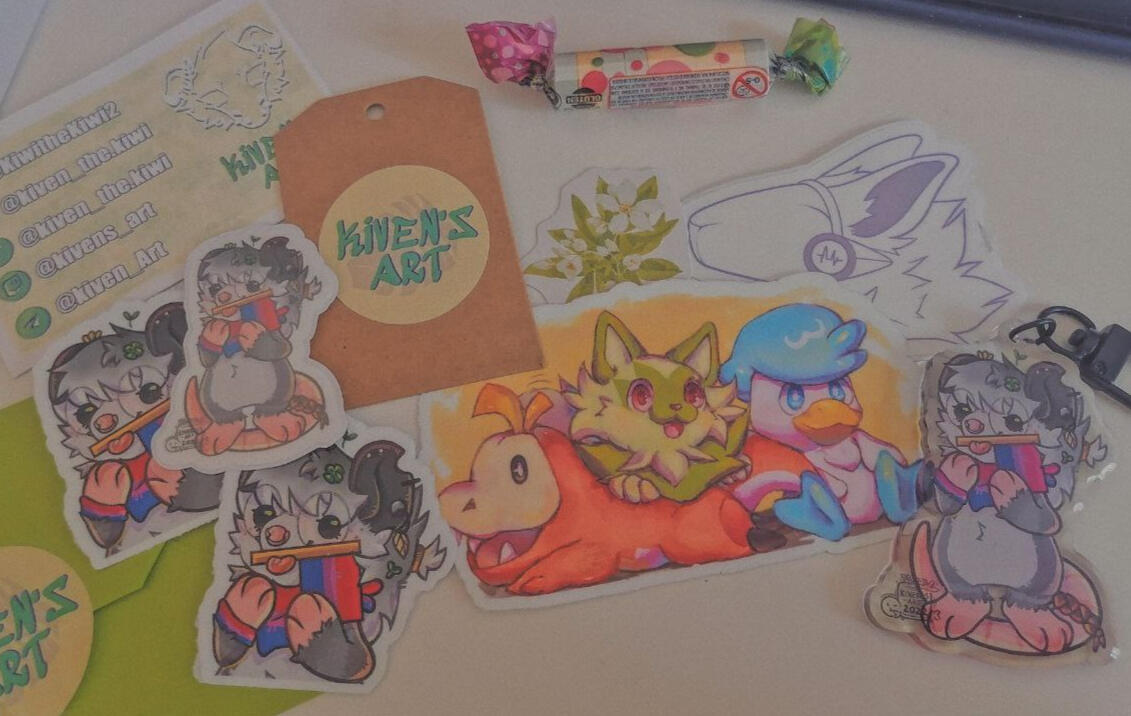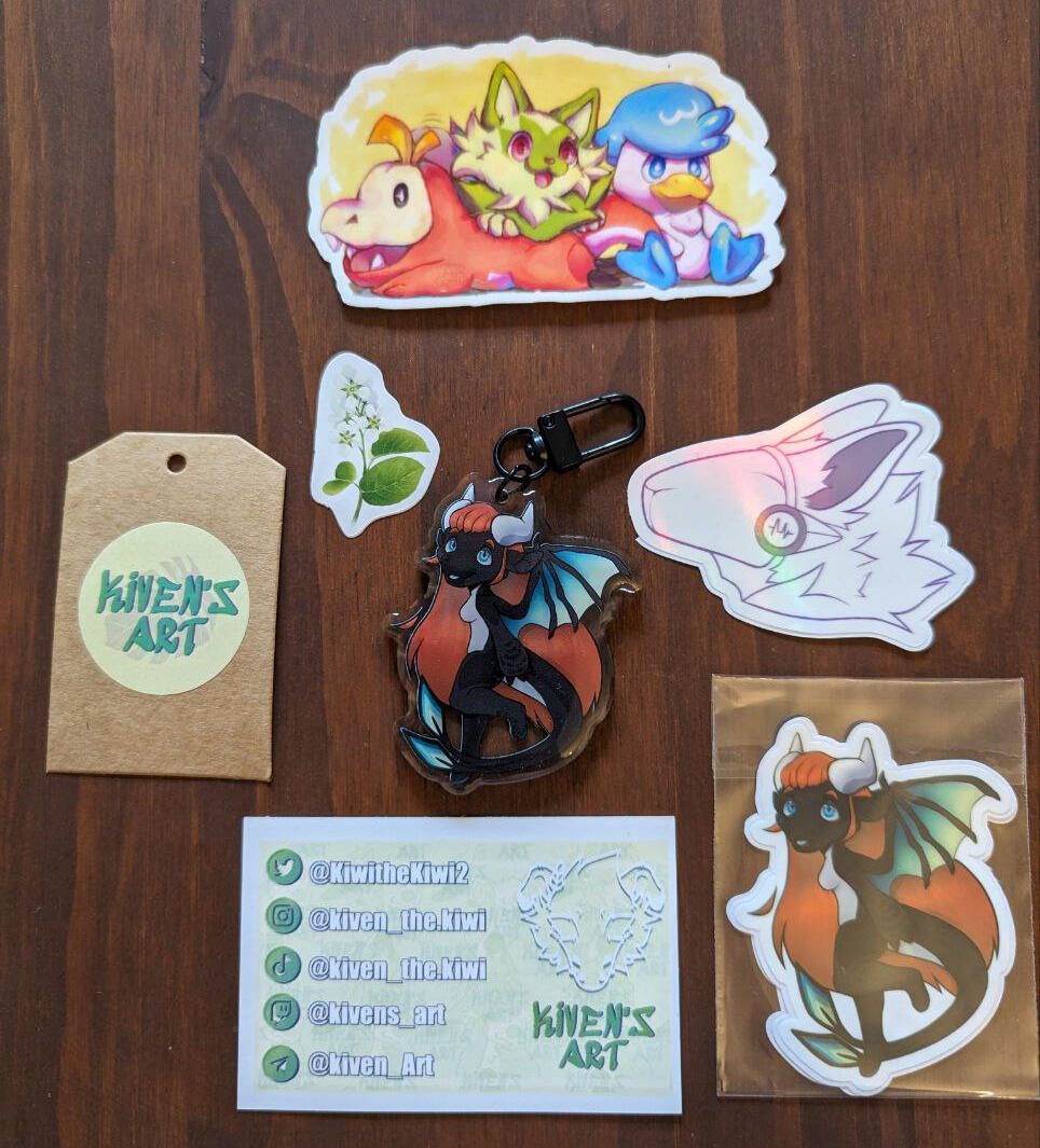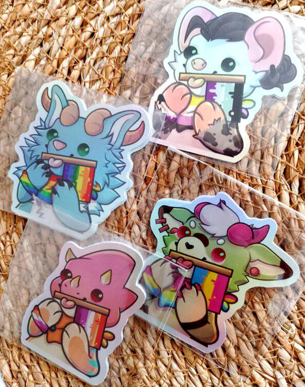I make stickers, prints, charms, standees and more types of merch using my art, I love experimenting with different formats and materials for my merch.